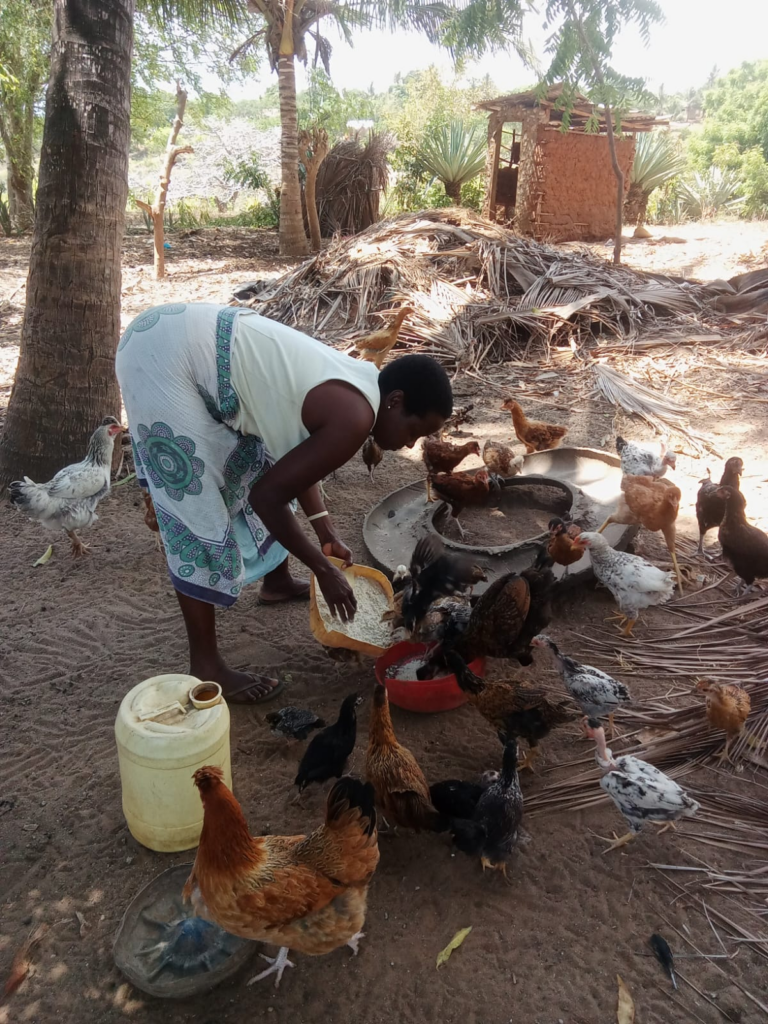 Amina Nguwa is a resident of Kiriba and a married mother of three children, all of whom are now married. She engages in poultry keeping as her main livelihood activity. Through the funds she accessed, she purchased maize germs to support her poultry.